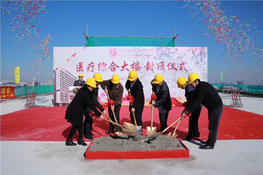 12月21日上午,陽光燦爛,番禺區何賢紀念醫院(區婦幼保健院)迎來了激動人心的歷史時刻——醫療綜合大樓順利封頂。區委常委、區政府黨組副書記崔學軍,區政府辦調研員何俊聲、市橋街道辦事處副主任陳杏甜、區住建局副局長黎校、區基建辦副主任鄭瑞峰,區衛計局邊葉兵局長、李潔蓉副局長、梁翠明調研員及何賢紀念醫院、監理單位、施工單位等相關部門領導出席了儀式。